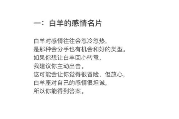 希望每一個(gè)白羊座女生都能夠在感情中找到真正屬于自己的幸福,勇敢地追求自己的夢(mèng)想,不要因?yàn)檫^去的感情而束縛自己的腳步。